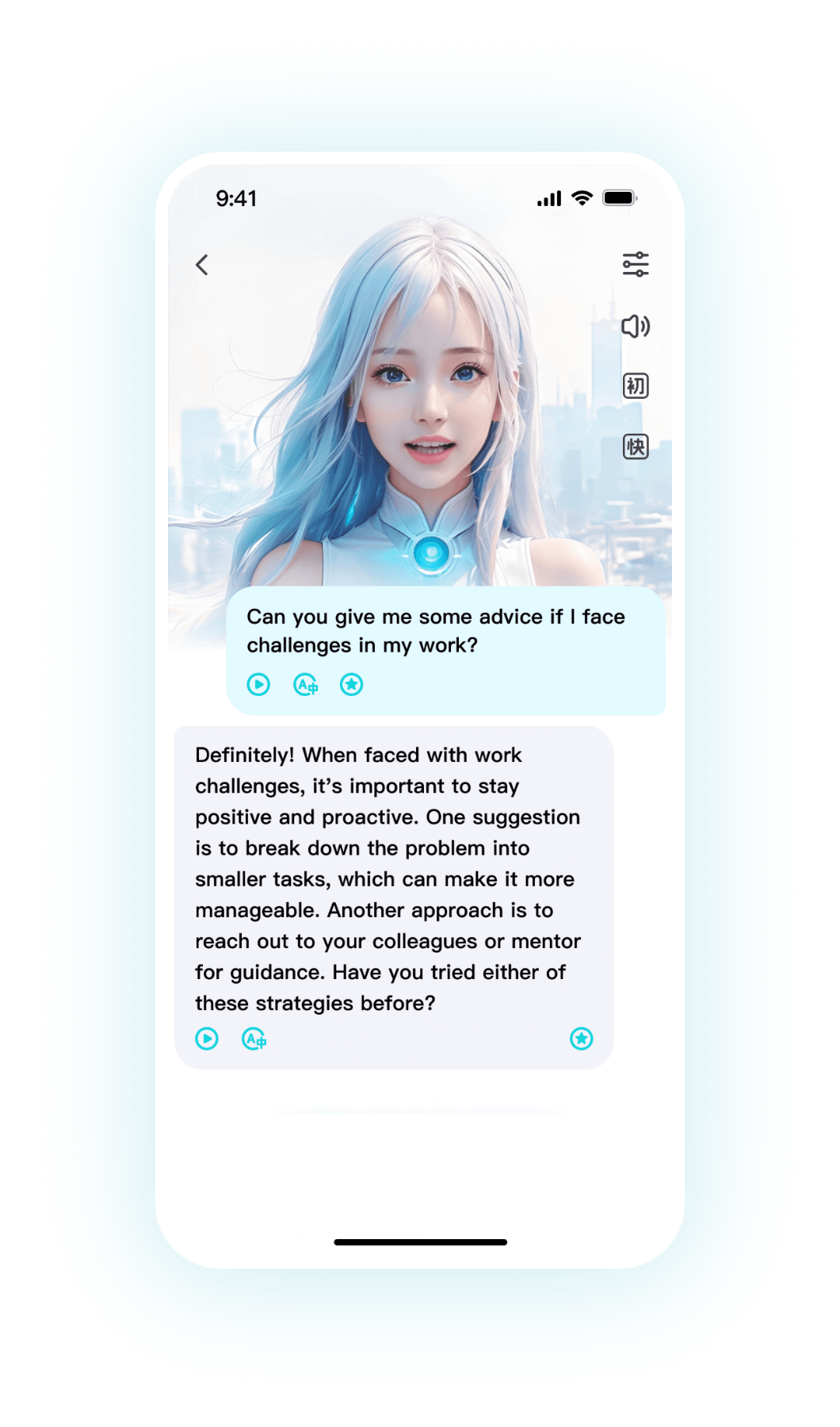 - 人物超级美丽富亲和力,颜值碾压所有同类产品,交互超级舒适简单,就像加了外教的微信。